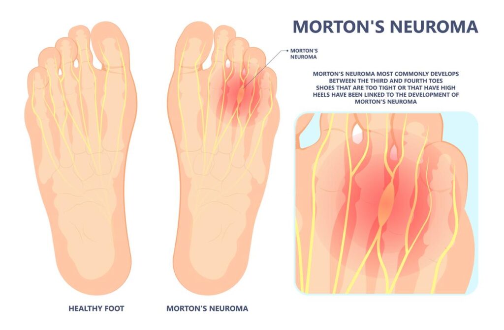 Procedure to remove the enlarged nerve tissue between the toes, providing relief from pain and discomfort.